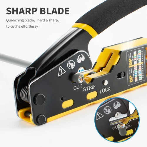 เครื่องย้ำสายเครือข่าย RJ45 แบบง่าย - 3-in-1 ย้ำ/ตัด/ปอกแลน CAT6A/6/5E (STP/UTP) และสายเคเบิลโมดูลาร์ RJ11/12 โทร