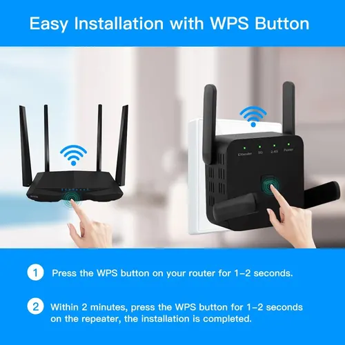 ตัวขยายช่วงสัญญาณไร้สาย1200Mbps 2.4 ghz/ 5GHz ตัวขยายสัญญาณไวไฟ repetdor Booster eu/us ปลั๊กสำหรับบ้านสำนักงาน