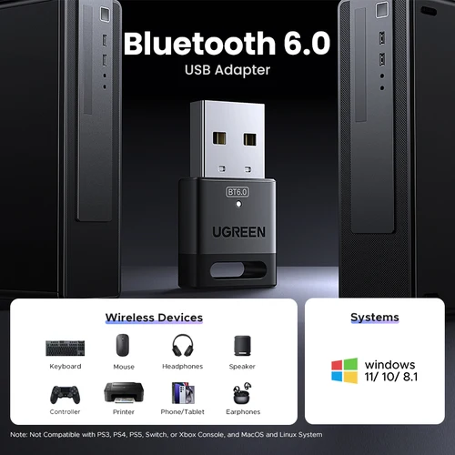 อะแดปเตอร์ USB Bluetooth, Bluetooth 6.0 Dongle สําหรับพีซี Windows 11/10/8.1, ตัวรับสัญญาณบลูทูธและเครื่องส่งสัญญาณสําหรับคีย์บอร์ด/เมาส์