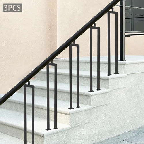 ลูกกรงบันไดรูปตัวยูขนาด 91.5 ซม. ทำจากเหล็กกล้าคาร์บอนสำหรับราวบันไดภายในอาคาร ชุด 3 ชิ้น สีดำ สำหรับตกแต่งบันได DIY