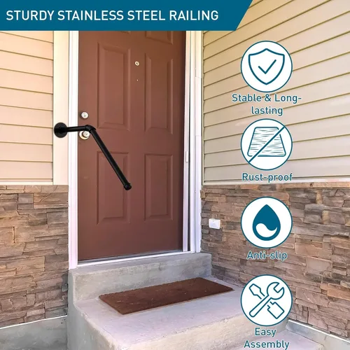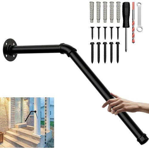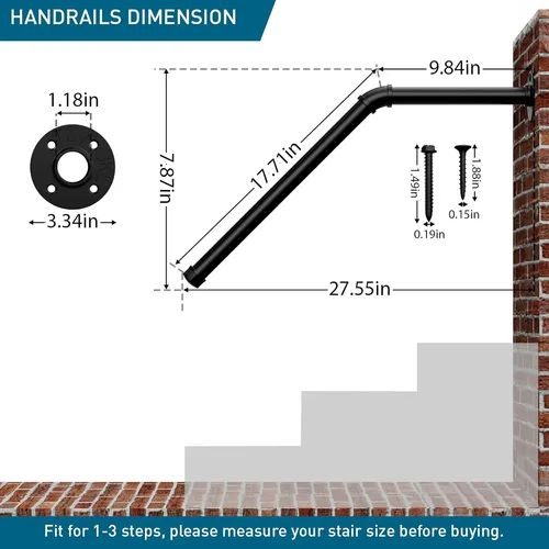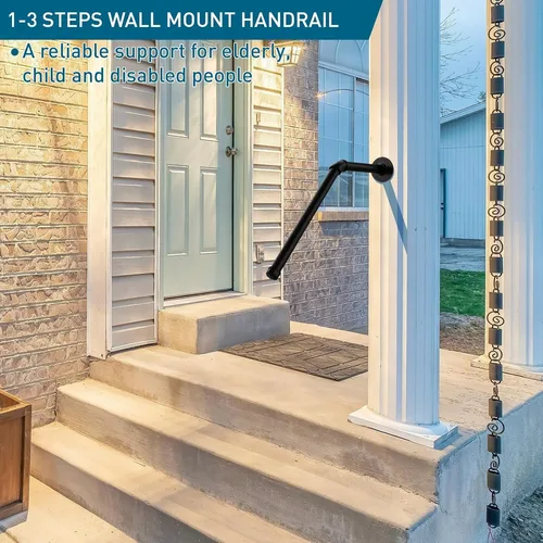 ราวจับบันไดโลหะกลางแจ้ง/ในร่ม | ราวจับนิรภัย 27.5 นิ้ว สําหรับ 1-3 ขั้นตอน | ผู้สูงอายุ/เด็ก/คนพิการกันลื่น