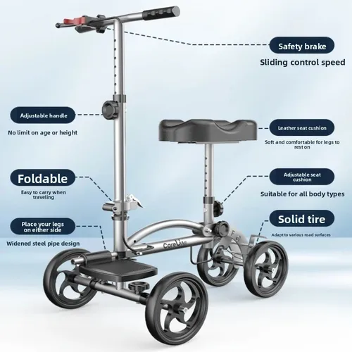 ไม้เท้าช่วยเดิน - เครื่องช่วยเดินขาเดียวสำหรับการฟื้นฟูอาการบาดเจ็บที่ข้อเท้า, สกู๊ตเตอร์เคลื่อนที่แบบพับได้พร้อมล้อ, ไม้เท้าพยุงการฟื้นฟูสมรรถภาพ