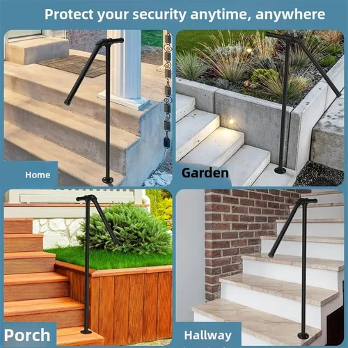 ราวบันไดเหล็กสําหรับขั้นตอนกลางแจ้ง 1/2/3 ราวบันไดขั้นตอนราวท่อเหล็กราวบันไดราวบันไดสําหรับขั้นตอนราวเหล็กสีดําสวน