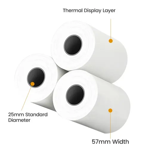 57*25 มม.กระดาษความร้อนป้ายสติกเกอร์กาวม้วนกระดาษสําหรับเครื่องพิมพ์ขนาดเล็กพิมพ์เด็กกล้องการพิมพ์กระดาษเปลี่ยน