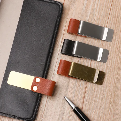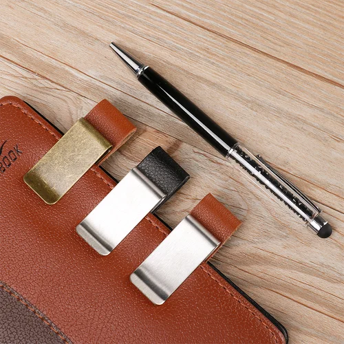 STONEGO Handmade หนังทองเหลืองสแตนเลสผู้ถือปากกาคลิปสมุดบันทึกโฟลเดอร์กระดาษเขียนอุปกรณ์สํานักงาน