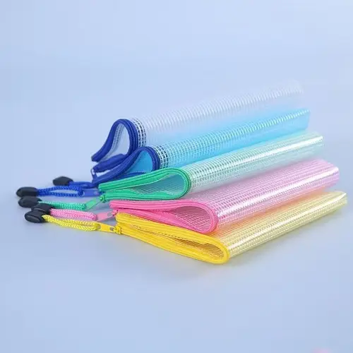 ถุงตาข่ายซิป A4/A5 ถุงซิปพลาสติกสำหรับจัดระเบียบกระเป๋าเดินทางกันน้ำใสเอกสารอุปกรณ์สำนักงาน,สีสุ่ม