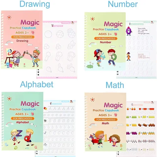 4 หนังสือปากกา Magic Writing Book การประดิษฐ์ตัวอักษรโน้ตบุ๊ค Montessori เด็ก Reusable การศึกษา Calligraphic Letter Practice ของเล่น