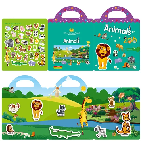 หนังสือสติกเกอร์การ์ตูนแบบใช้ซ้ําได้สําหรับเด็กหลายฉาก DIY เกมปริศนาการศึกษาการเรียนรู้ของเล่นคลาสสิกสําหรับเด็กอายุ 2-4 ของขวัญ