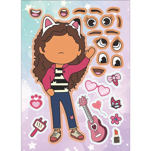 6/12 แผ่น Gabby's Dollhouse Make A Face ปริศนาสติกเกอร์เด็กทํา DIY เกมเด็กการ์ตูนจิ๊กซอว์การศึกษาของเล่นของขวัญ