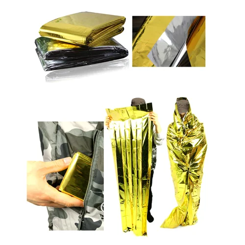 160*210 ซม.ผ้าห่มฉุกเฉินกันน้ําอุ่นผ้าห่ม Camping Survival เครื่องมือช่วยชีวิต First Aid ฉนวนกันความร้อนเครื่องมือ GOLD
