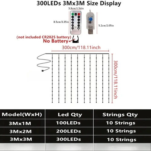 ไฟม่าน LED ใช้พลังงานจาก USB พร้อมรีโมทคอนโทรล ของตกแต่งวันหยุดคริสต์มาสสำหรับบ้าน งานแต่งงาน วันเกิด ห้องนอน ไฟปาร์ตี้