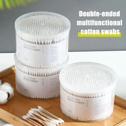 500PCS ผ้าฝ้าย Swab กล่องคู่รอบหัวสําหรับแต่งหน้าและแต่งหน้าทําความสะอาดทุกวัน Pet Care Multi-Purpose