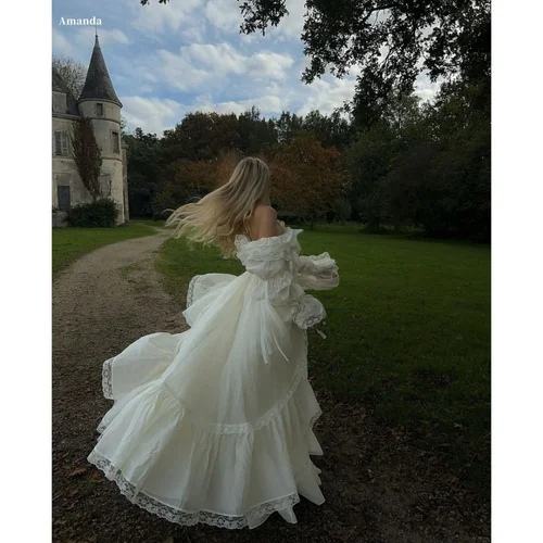 Amanda ที่กําหนดเองสีขาวหนึ่งไหล่แขนยาวชุดราตรี Organza vestidos de Noche ความยาว A-Line ชุดราตรีอย่างเป็นทางการ 2025