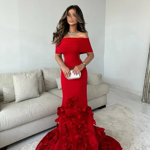 Mila ปิดไหล่ Mermaid เซ็กซี่ที่กําหนดเองชุดราตรี 3D ดอกไม้ชุด Court รถไฟชุดราตรียาว 2025