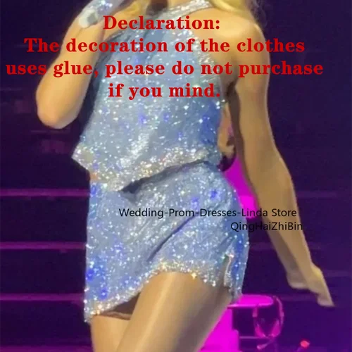 น่ารักสีฟ้าชุดชื่อเสียง Silver Edge Sparkle Sequins มินิค็อกเทลชุดสั้น 2 ชิ้นดําเนินการชุดใหม่ในปี 2024