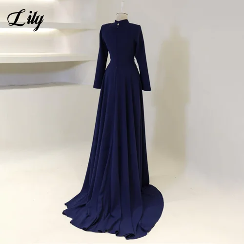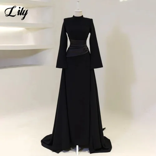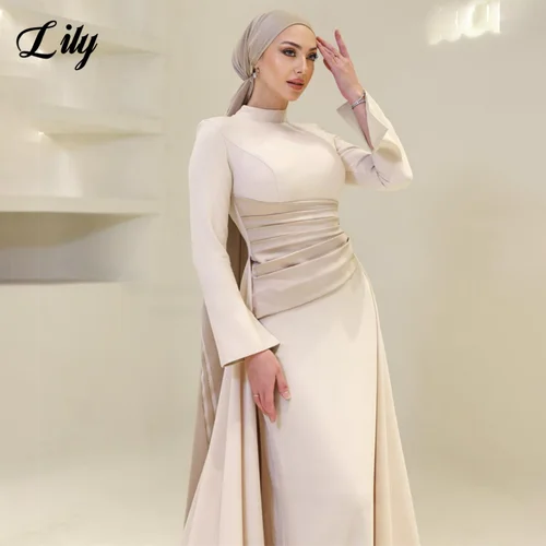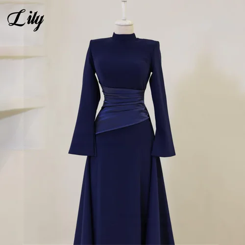 Lily Burgundy Elegant Prom Dresses คอยาวแขนยาว Mermaid ชุดราตรีซาตินมุสลิม Gowns อย่างเป็นทางการดูไบที่กําหนดเอง