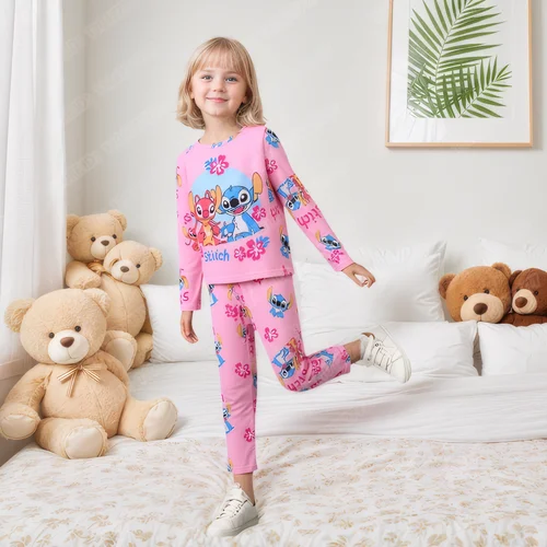 เด็กอะนิเมะ Stitch ชุดนอน 2 ชิ้นชุดสําหรับชายหญิงสวมใส่เด็กชุดนอนสบายๆแขนยาวชุดนอนชุดของขวัญน่ารัก