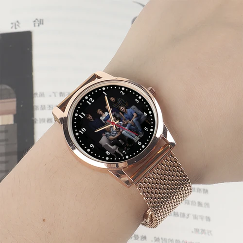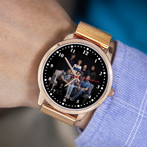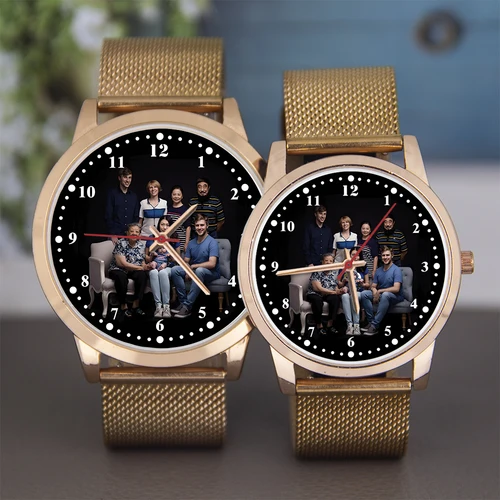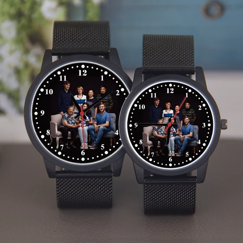 นาฬิกาพิมพ์ลายรูปภาพ โลโก้ ขนาด 45/38 มม. ดีไซน์เท่ห์ ของขวัญสุดพิเศษ ตัวเรือนโลหะผสมสีดำ เงิน โรสโกลด์ ระบบควอตซ์ สายซิลิโคน/หนัง