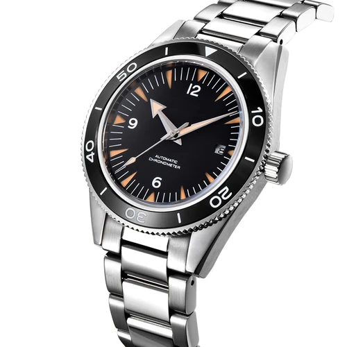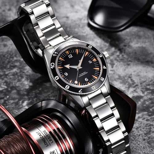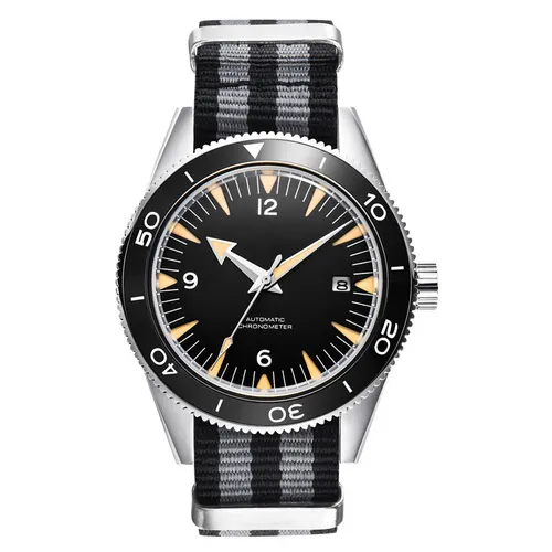 41 มม.ที่กําหนดเองส่วนบุคคล NH35 แกะสลักชื่อโลโก้ผู้ชายอัตโนมัตินาฬิกาข้อมือไนลอนหนัง Band Miyota Seagull