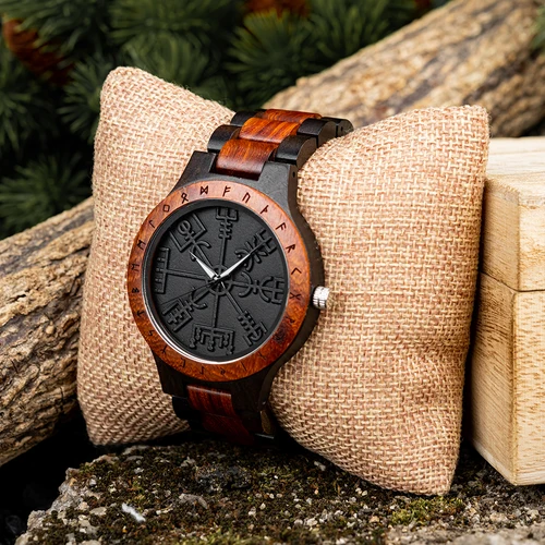 BOBO BIRD นาฬิกาสำหรับ Man ไวกิ้ง Odin Rune ผู้ชายนาฬิกาข้อมือควอตซ์วัฒนธรรม Totem Dail ไม้สาย Reloj De Hombre