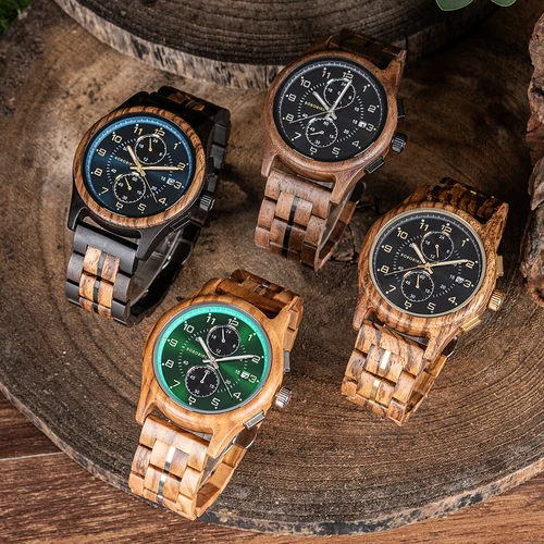BOBO BIRD นาฬิกาข้อมือโครโนกราฟพร้อมมือส่องสว่างนาฬิกาไม้ที่กําหนดเองแกะสลักนาฬิกาไม้สําหรับผู้ชายของขวัญวันครบรอบสําหรับเขา