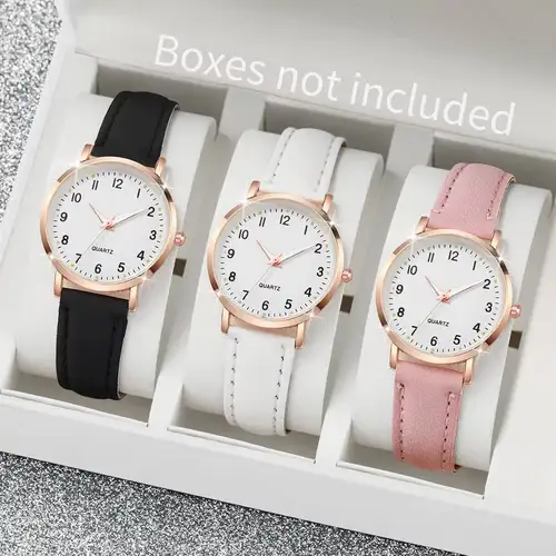 3ชิ้นหน้าปัดภาษาอาหรับแบบเรียบง่ายนาฬิกาผู้หญิงสายหนังลำลองนาฬิกาควอทซ์อนาล็อก (ไม่มีกล่อง)