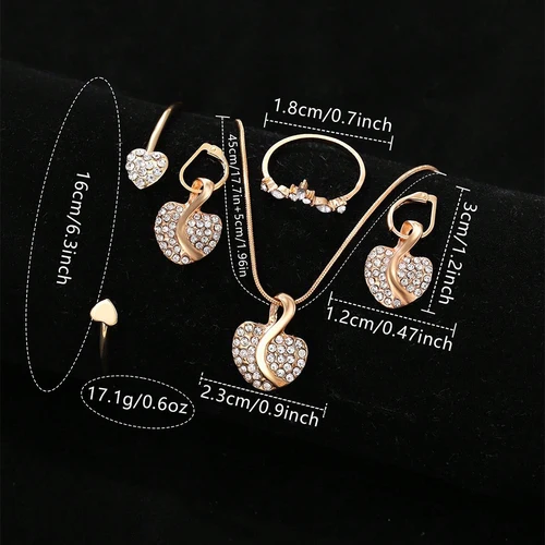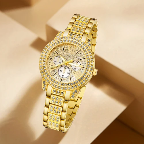 ผู้หญิงควอตซ์นาฬิกาทองผู้หญิงหรูหราแหวนสร้อยคอต่างหู Rhinestone แฟชั่นนาฬิกาข้อมือสุภาพสตรีนาฬิกาชุดเครื่องประดับ