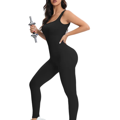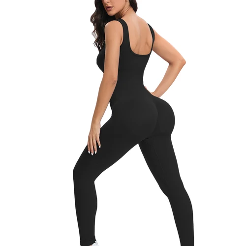 ข้อเสนอที่ดี Shapewear Jumpsuits สําหรับผู้หญิง Built-In Bra Bodycon สแควร์คอแขนกุดฤดูร้อน Rompers Ribbed Jumpsuit เพียงต้องการ THB 574.93 ตอนนี้มีส่วนลด 49.65 %