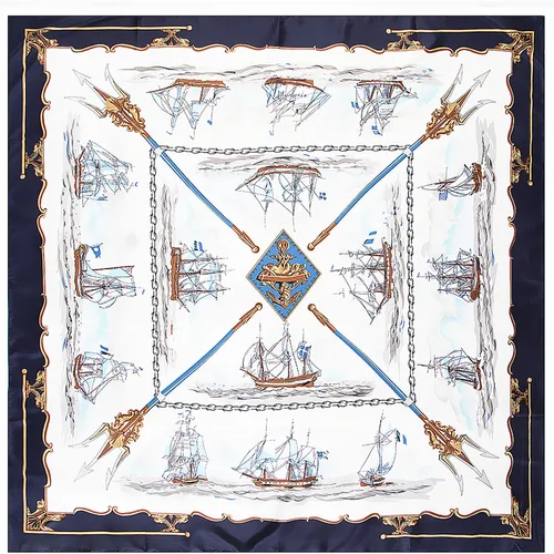ใหม่ยุโรปคลาสสิกอเมริกันแล่นเรือใบใหม่สุภาพสตรีแบรนด์หรูผ้าพันคอ Hijab Foulard ผ้าพันคอ130ซม.ผ้าพันคอขนาดใหญ่