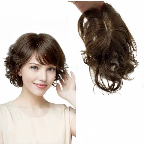 ท็อปเปอร์ผมมนุษย์หยักสำหรับผู้หญิง 25 ซม. คลิปในชิ้นผมหยิกต่อเพิ่มปริมาณผมสีน้ำตาลอ่อนไม่ใช่-เรมี่