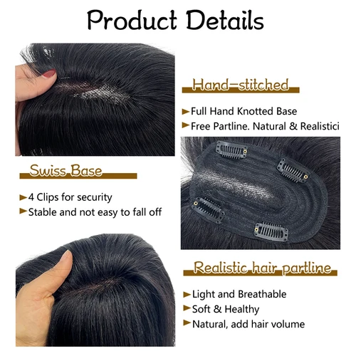 10นิ้วสีดำน้ำตาลเข้มผู้หญิงเส้นผมมนุษย์9*14ซม. คลิปตาข่ายผมต่อด้านบนวิกผมชิ้นสำหรับชีวิตประจำวัน