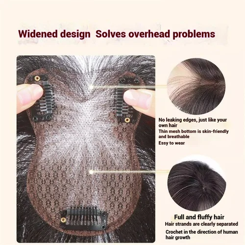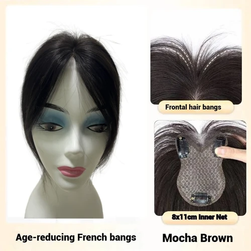 ท็อปเปอร์ผมตาข่ายบางเฉียบ 8x11 ซม. คลิปอินผมหน้าม้าสำหรับผู้หญิงผมจริงปุยเพิ่มปริมาณปกปิดผมขาว