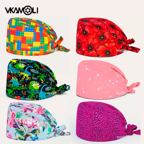 Gorroicos การ์ตูนการพิมพ์ขัดหมวกศัลยกรรมหมวกพยาบาลขัดหมวกคลินิกสัตว์เลี้ยงทํางานหมวกทางการแพทย์หมวกขัด
