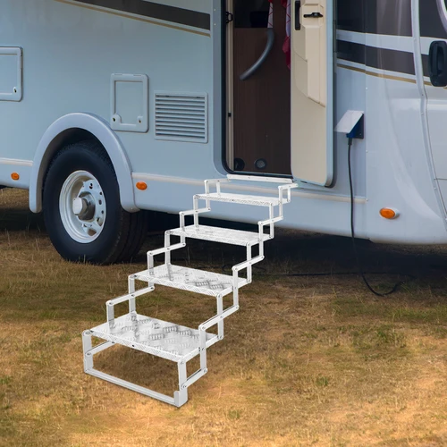 บันไดพับได้ 4 ขั้น บันไดอลูมิเนียมอัลลอยด์แบบกรรไกร กว้าง 17 นิ้ว สำหรับรถบ้าน รถแคมป์ปิ้ง ห้องใต้หลังคา โกดัง รับน้ำหนักได้ 110 กิโลกรัม