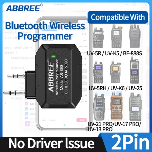 ABBREE บลูทูธไร้สายโปรแกรมเมอร์สำหรับเครื่องส่งรับวิทยุปลั๊ก&เล่นไม่มีปัญหาไดร์เวอร์โทรศัพท์สำหรับ UV5R BF888S Quansheng UVK5
