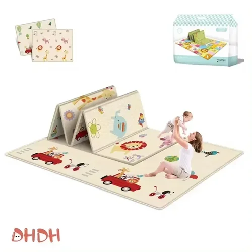 กิจกรรมสําหรับทารก Outdoor Camping Mat พรมเล่นพับได้สองด้านรูปแบบการ์ตูนพรมกันน้ําพกพาง่าย