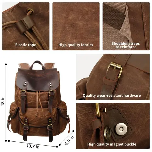 ข้อเสนอที่ดี กระเป๋าเป้หนัง, กระเป๋าเป้ผ้าแคนวาสเคลือบแว็กซ์สไตล์วินเทจสำหรับการเดินทางและการทำงาน, กระเป๋าเป้ลำลองสำหรับผู้ชาย M80 สีน้ำตาล เพียงต้องการ THB 7656.83 ตอนนี้มีส่วนลด 56.22 %