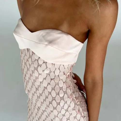 ข้อเสนอที่ดี ชุดเดรสยาวเกาะอกหรูหราสง่างามสำหรับผู้หญิง ประดับเลื่อมวิบวับ เหมาะสำหรับวันหยุดพักผ่อนริมชายหาด ชุดเดรสฤดูร้อนสีชมพูฟ้าแบบเซ็กซี่ ไม่มีแขน เพียงต้องการ THB 2308.52 ตอนนี้มีส่วนลด 54.00 %