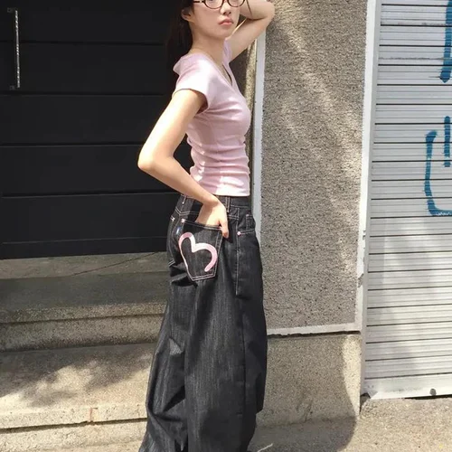 กางเกงยีนส์เดนิมผู้หญิงทรงหลวมสไตล์ Y2K สำหรับฤดูใบไม้ร่วงและฤดูหนาวปี 2025 กางเกงยีนส์ทรงแบ็กกี้สไตล์กรันจ์ ฮาราจูกุ คาวบอย รุ่นใหม่ กางเกงยีนส์สไตล์มัม ยีนส์พังก์ย้อนยุคสไตล์เกาหลี
