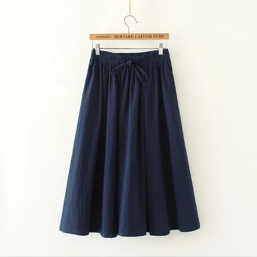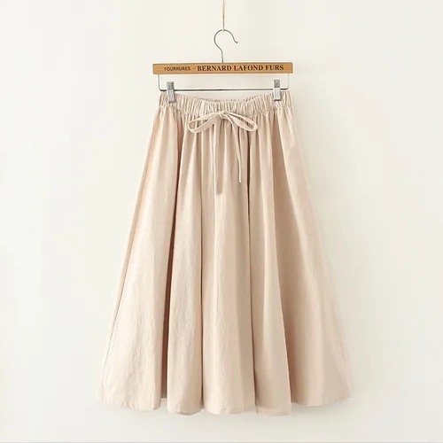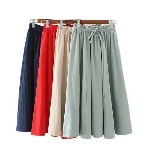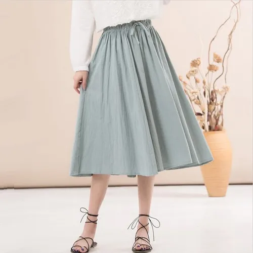 กระโปรงผ้าฝ้ายลินินสีพื้นสำหรับผู้หญิง ปี 2026 แฟชั่นฤดูใบไม้ผลิและฤดูร้อนแบบใหม่ ผูกเชือกทรงเอ - สไตล์ลำลองหลวมๆ เอวสูง ทรงเข้ารูป สีขาว