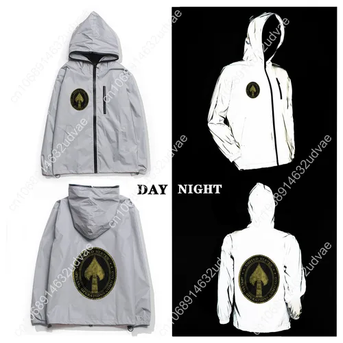 เสื้อแจ็คเก็ตสะท้อนแสง US Special Forces SOCOM สำหรับผู้ชายและผู้หญิง เสื้อโค้ทมีฮู้ดกันลม มีกระเป๋าสำหรับวิ่ง ซิป เสื้อฮู้ดแบบกำหนดเองได้