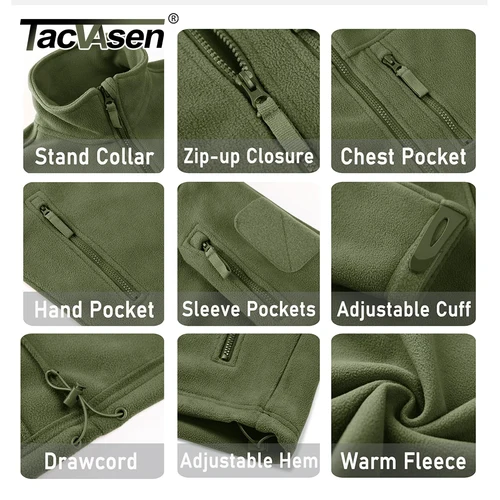 TACVASEN เสื้อแจ็คเก็ตขนแกะผู้ชายนุ่มอบอุ่น Windproof Full Zip Up Coat กระเป๋าซิปหลายกระเป๋าเดินป่าทํางานกลางแจ้ง Windbreaker
